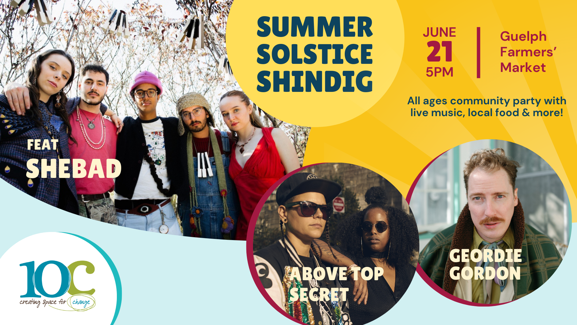 June 21st –10C Summer Solstice Shindig (5pm-Midnight) @ Guelph Farmers Market – Backlot all ages party including live music, food, vendors & more. Click Here for Information & Tickets.